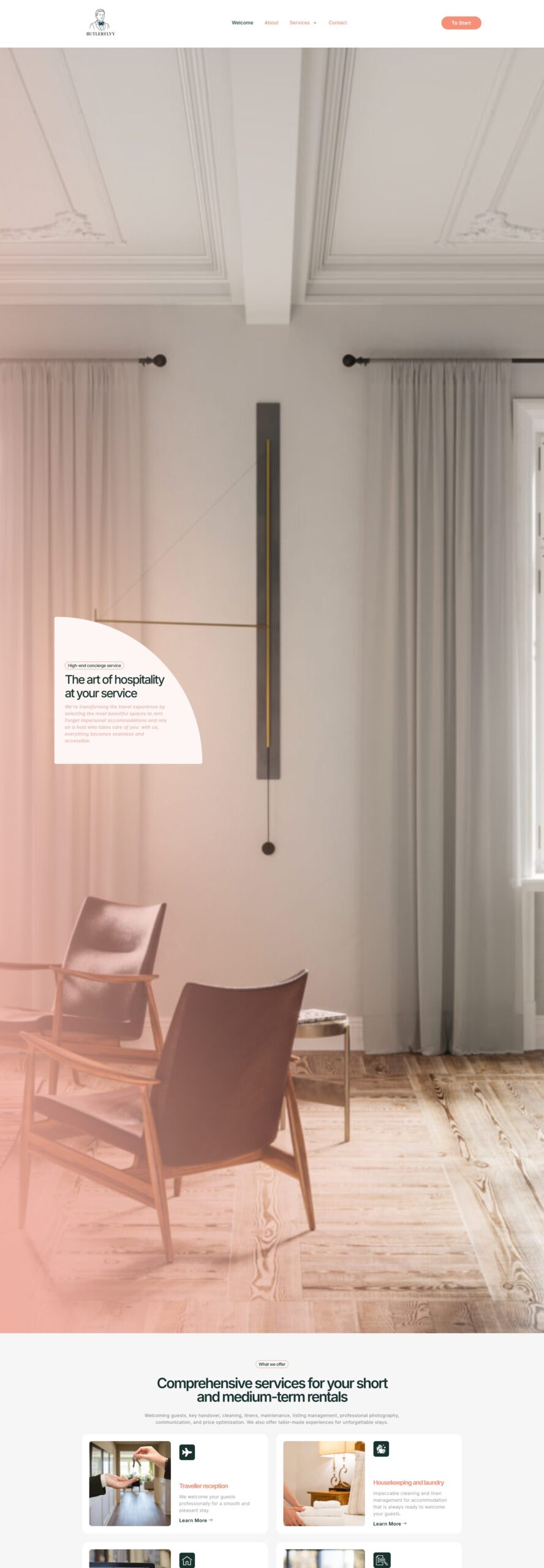 Butlerflyy is a premium hospitality and property management website built for a French company that specializes in full-service support for short‑ and medium‑term rental properties. The goal of the project was to create a professional online presence that clearly shows Butlerflyy’s range of services and expertise, and helps property owners understand how the brand can take care of everything involved in managing rental stays.