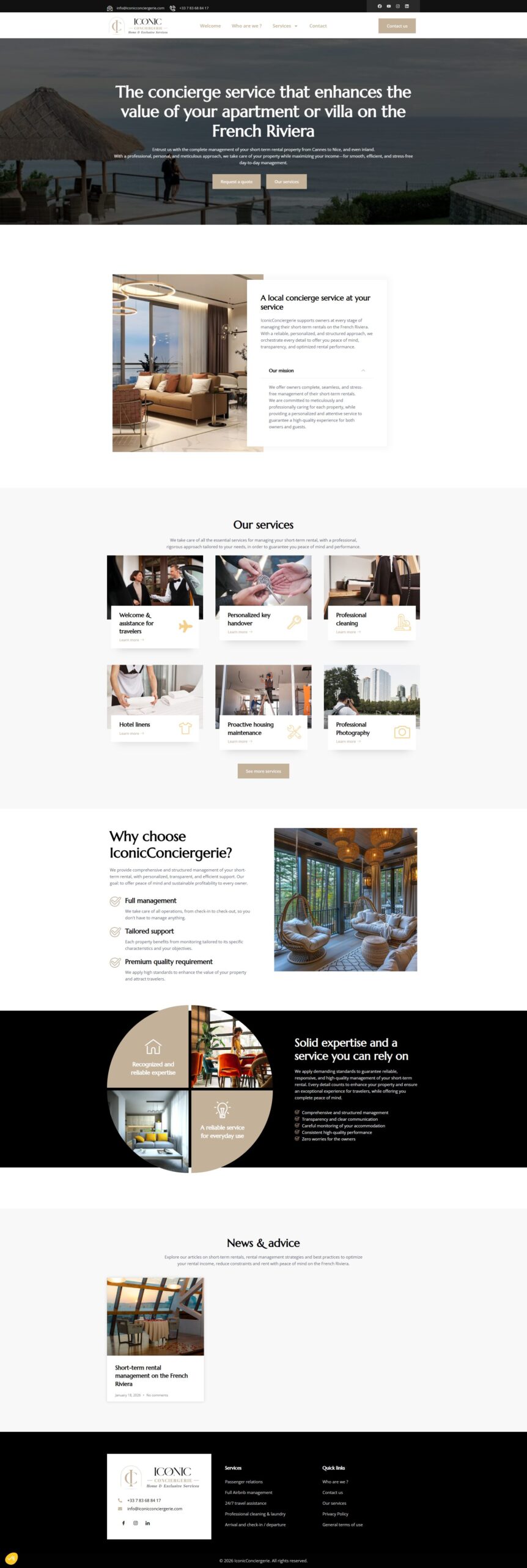 Iconic Conciergerie is a modern, service-focused website created for a premium concierge company that offers tailored property management, guest services, and lifestyle support for homeowners and short-term rental hosts. The goal was to build a polished and inviting online presence that reflects the brand’s dedication to seamless experience, premium care, and high client satisfaction.